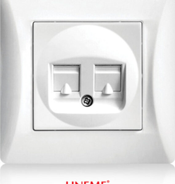 Lineme Διπλή Πρίζα Δικτύου RJ45 με Πλαίσιο Τύπου Cat6 σε Λευκό Χρώμα 50-00130-1