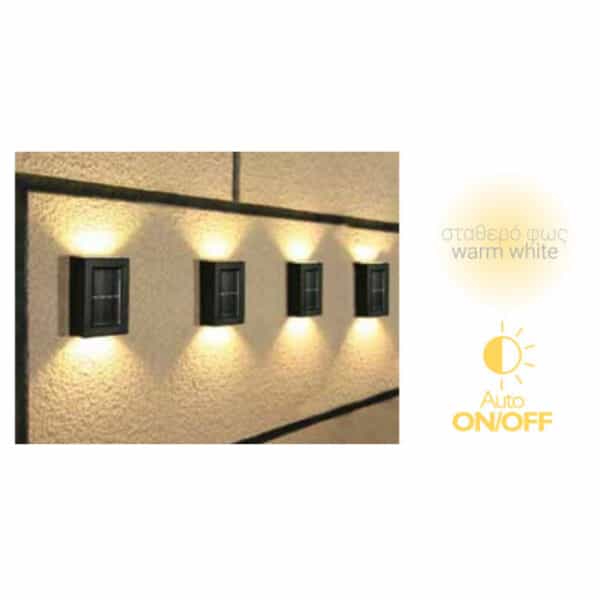 Ηλιακά Φωτιστικά με Θερμό Λευκό Φως Fos me Σετ 4 Επιτοίχια 47-00089