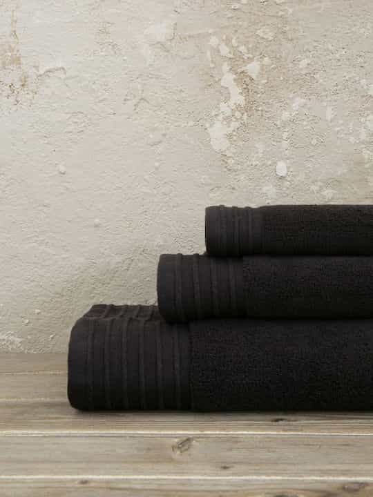 Η βαμβακερή πετσέτα feel fresh total black σε μαύρο χρώμα, θα ξεχωρίσει με την υφή και την ποιότητά της και θα δώσει έναν ισχυρό χαρακτήρα στο μπάνιο σας. Αποτελεί μια διαχρονική επιλογή μονόχρωμης πετσέτας με διακριτικό ανάγλυφο ριγέ σχέδιο στο τελείωμα.
