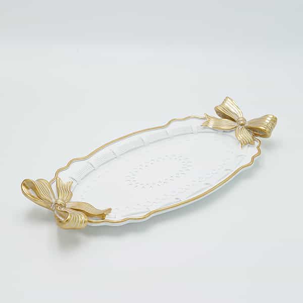 Δίσκος Polyresin Με Φιόγκους Λευκός-Χρυσός 32×15,5×4εκ. ESTHETI 819-00557
