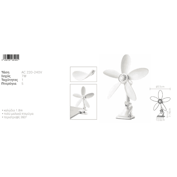 Ανεμιστήρας με Κλίπ Λευκός Φ33